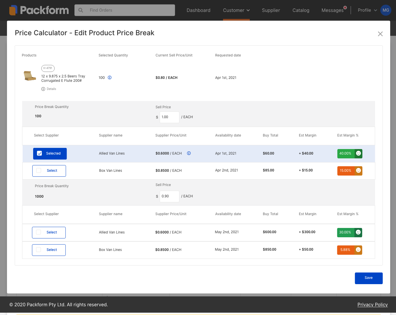 I designed a Smart Purchasing system to help dealers make better pricing decisions. They can now set tiered pricing for items—for example, charging $1 per unit for orders under 1,000, and $0.90 per unit for larger orders.