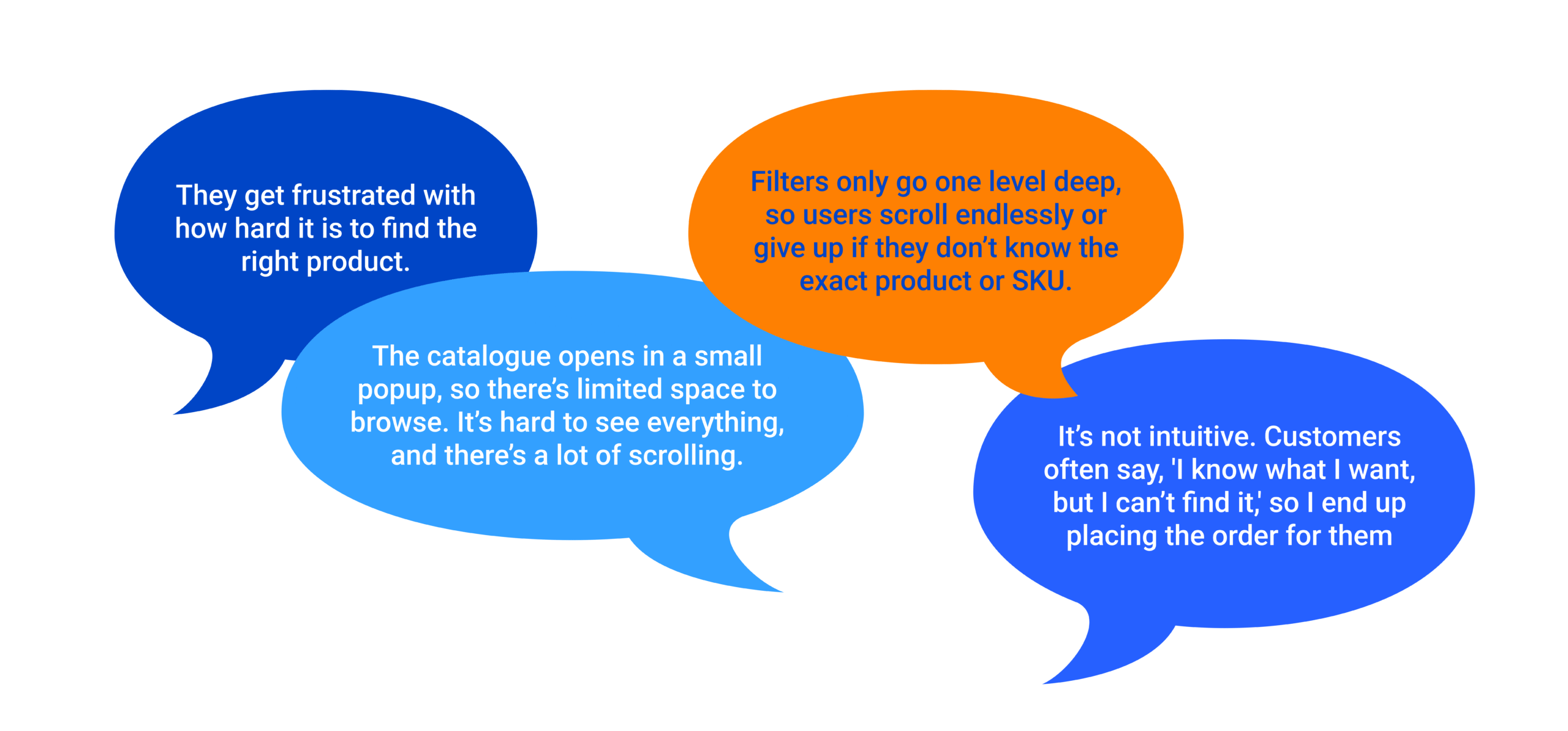 To understand why users were dropping off at the search stage, we interviewed a U.S.-based dealer. Drawing from daily customer interactions, they shared clear pain points around product discovery, filtering, and overall catalogue usability.